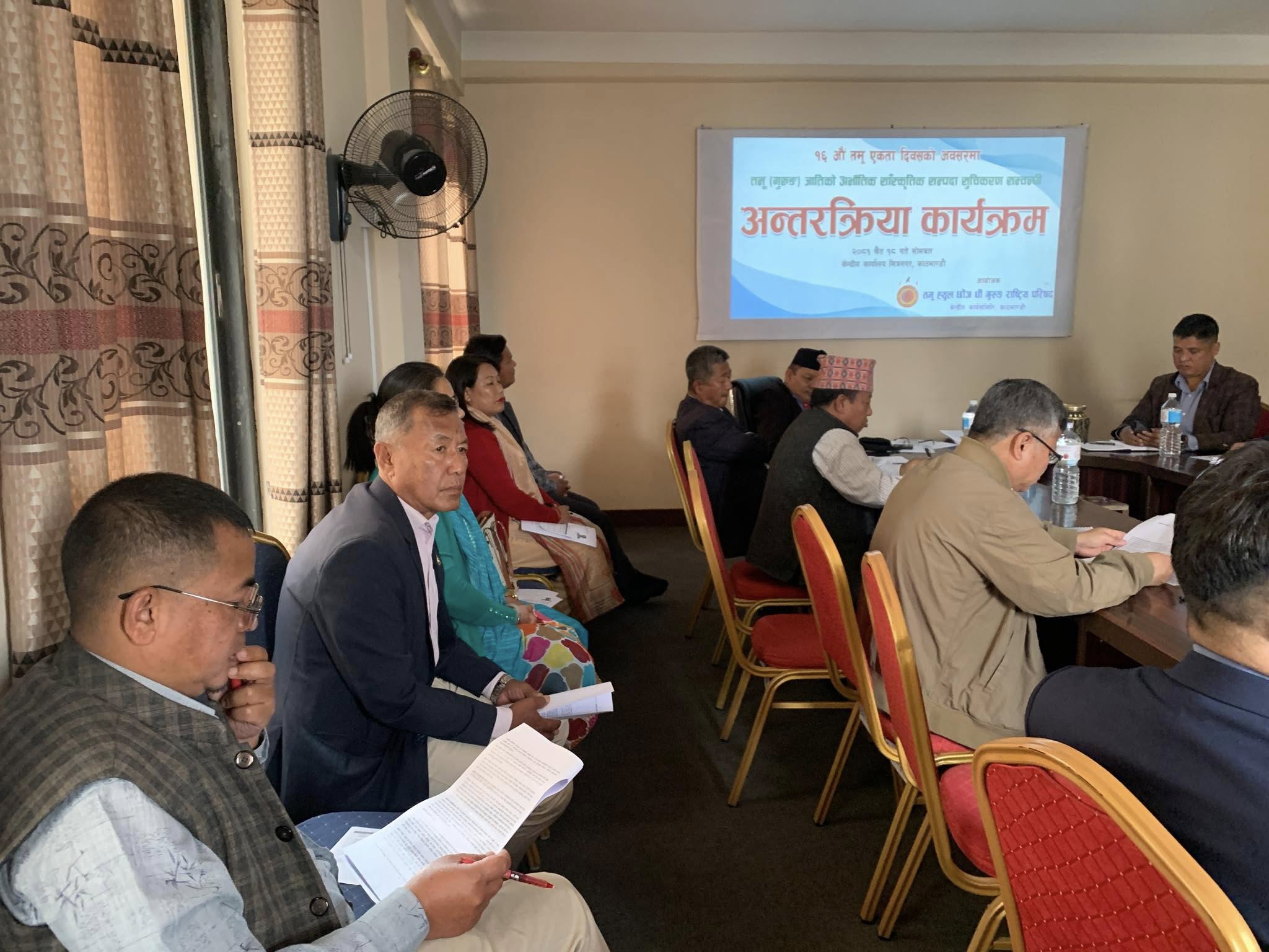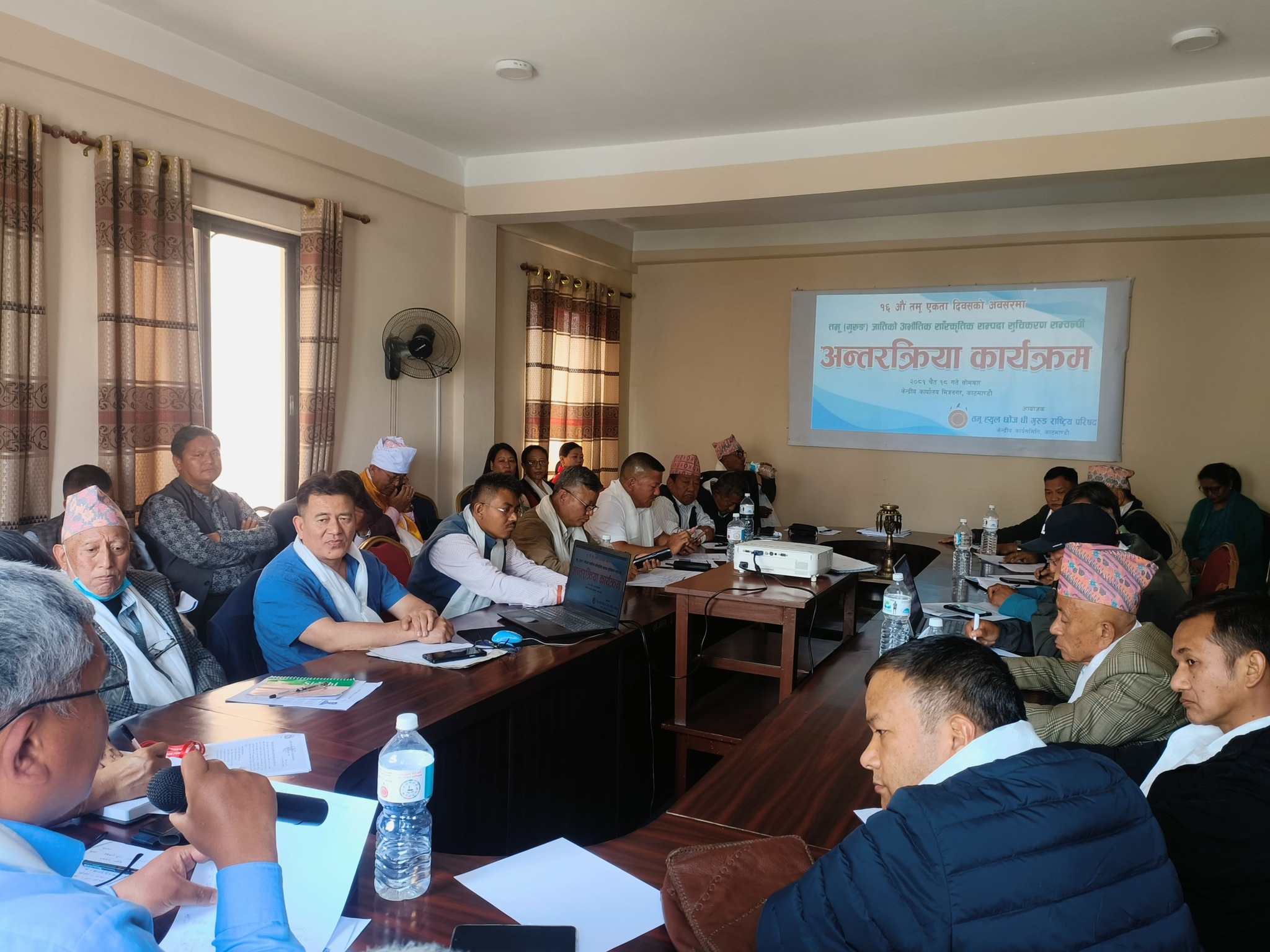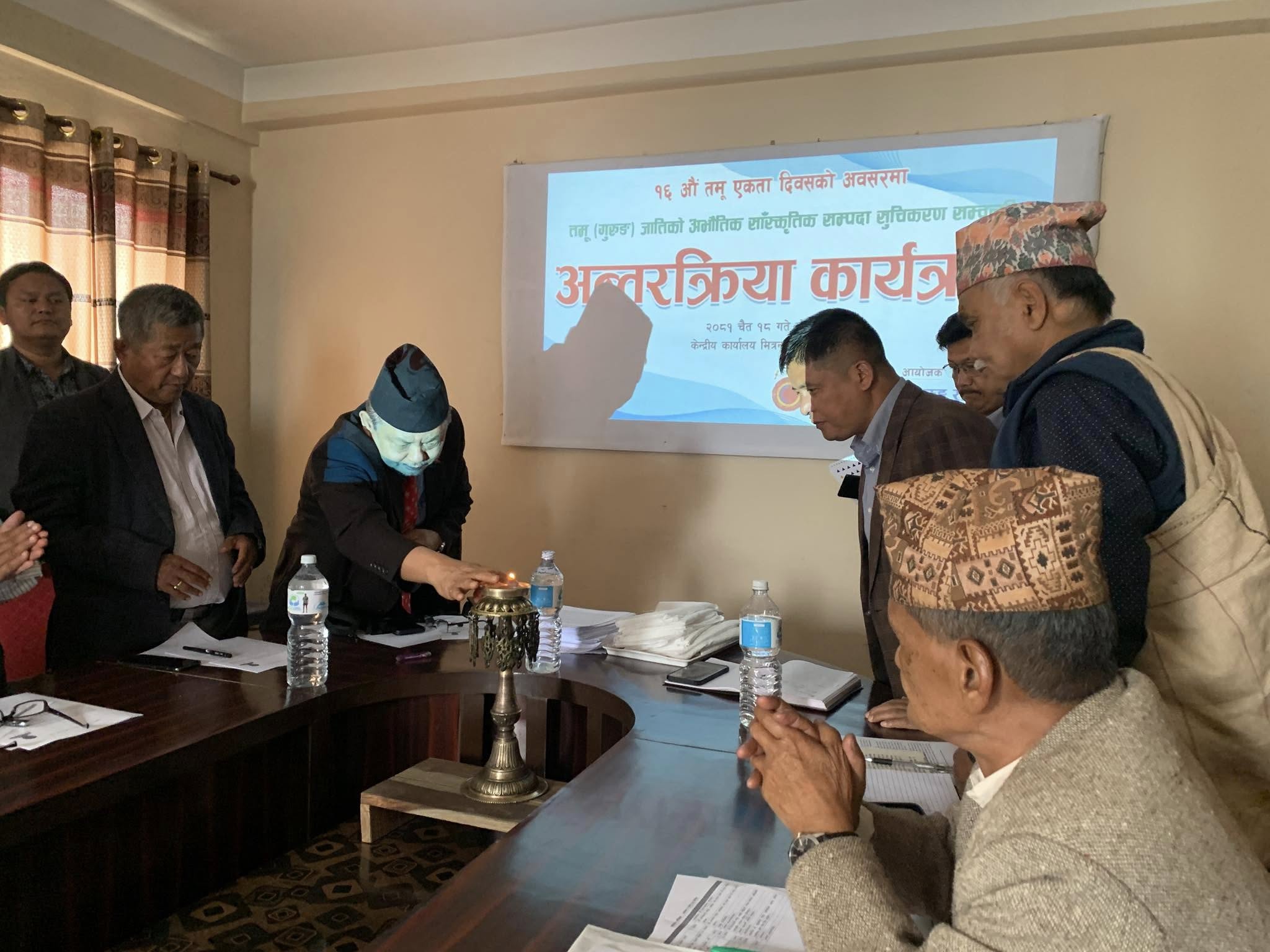 १६ औं तमू एकता दिवसको अवसरमा तमू ह्युल छोंज धीं गुरुङ राष्ट्रिय परिषदको आयोजनामा तमू बिज्ञहरूको उपस्थितिमा तमू जातिको अभौतिक सम्पदाहरूको सुचिकरण सम्वन्धी अन्तरक्रिया कार्यक्रम नेपाल सरकार राष्ट्रिय प्राकृतिक स्रोत तथा बित्त आयोगको का. अध्यक्ष स. जुद्धबहादुर गुरुङको प्रमुख आतिथ्यमा सम्पन्न भयो ।